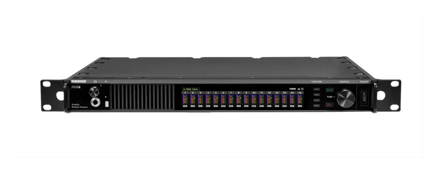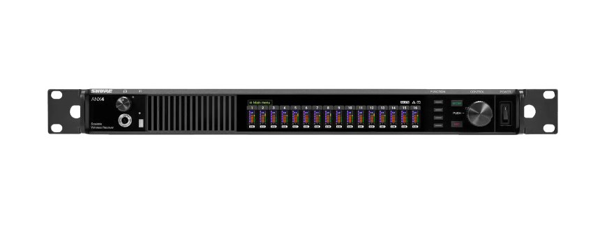The ultimate high-tier, high channel count wireless receiver, Shure ANX4 receives up to 16 channels of Shure Axient Digital or 24 channels of Shure ULX-D wireless audio in a single rack space. Delivering maximum flexibility, ANX4 does not ship preconfigured with active wireless channels, allowing you the opportunity to purchase channels in single- and four-channel increments and activate the exact number of channels you need. Licenses can be activated in one ANX4 and later removed and activated in a different ANX4 as needs change. ANX4 channel licenses are perpetual licenses, not subscription-based licenses, and can be purchased through the same authorized suppliers ANX4 hardware units are sold (or at Shure.com/anx4) and managed via your ShureCloud user account. All the exceptional features found in award-winning Axient Digital and ULX-D receivers that have made them standards on stages, in facilities, on tour, and on location throughout the world are available in the ANX4**. Whether you operate ANX4 in Axient Digital or ULX-D transmission mode, ANX4 maximizes your budget, rack space, and rack weight in delivering large wireless audio channel counts in a single rack design. What’s more, this 1RU format also enables streamlined antenna configurations for large channel count environments. *ANX4 receiver does not ship preconfigured with active wireless channels. Channel licenses are sold separately and required for operation. **System features are dependent upon activated transmission mode: Axient Digital or ULX-D (ANX4 does not support both systems at one time).