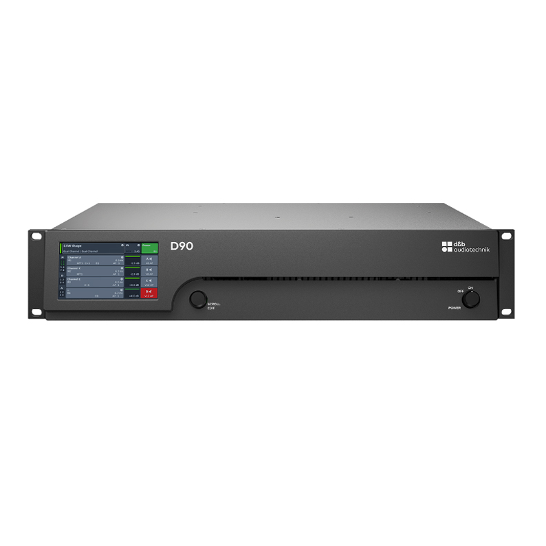 The D90 amplifier has a dynamic range of 119 dB (unweighted) and is designed to drive high voltage d&b loudspeakers while providing extensive protection capabilities.